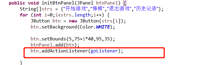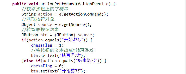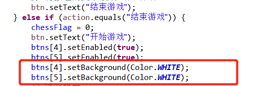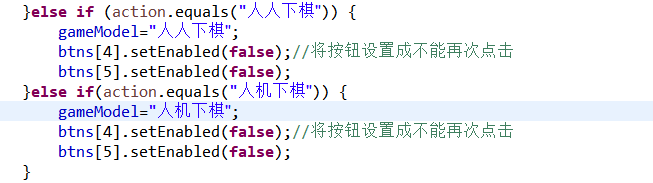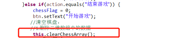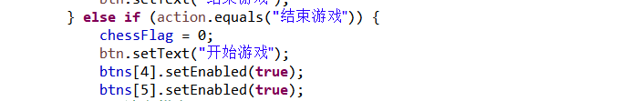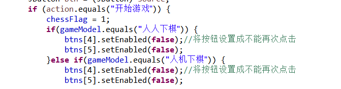 设置开始游戏按钮功能:必须先点击开始游戏按钮才可以开始下棋,按下之后变成结束游戏