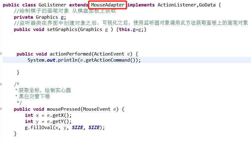 MouseAdapter:把所有MouseListener中的方法都实现,可以继承它对其中的某一个方法进行重写,就可以不用写MouseListener中全部的方法