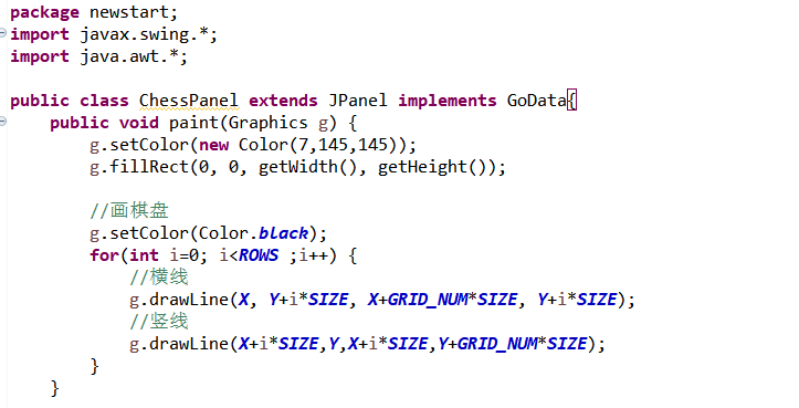 不能直接设置棋盘所在面板的背景颜色,所以要新建一个类,继承JPanel,重写里面的paint方法