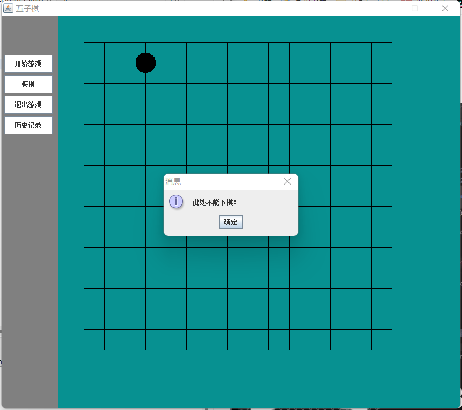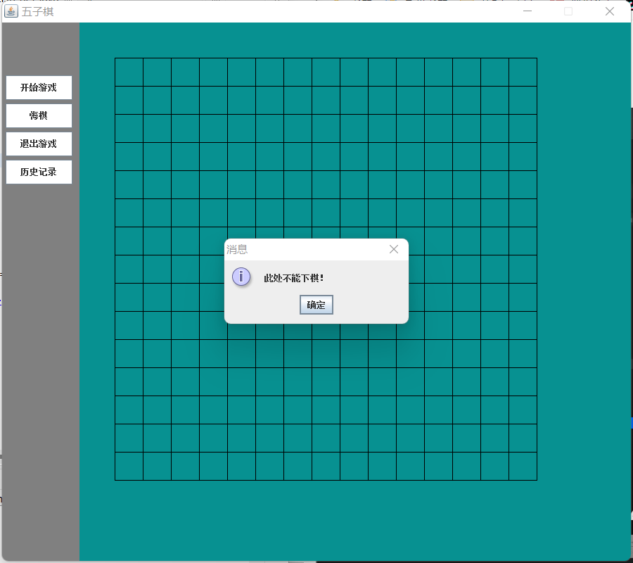 运行效果:(鼠标点击棋盘外的位置都会有弹窗出现)