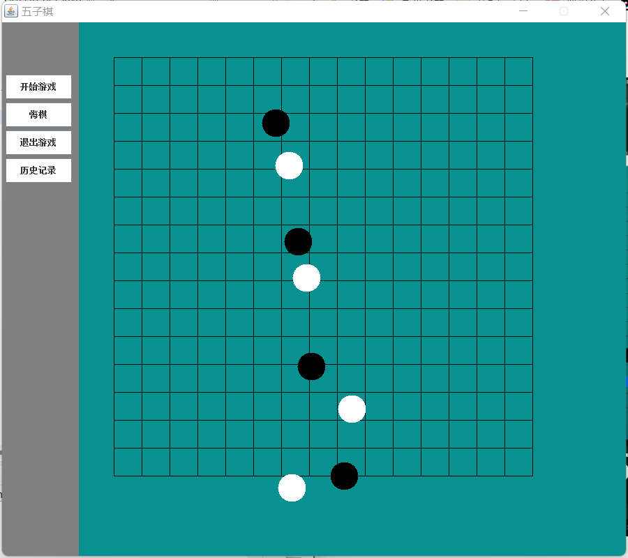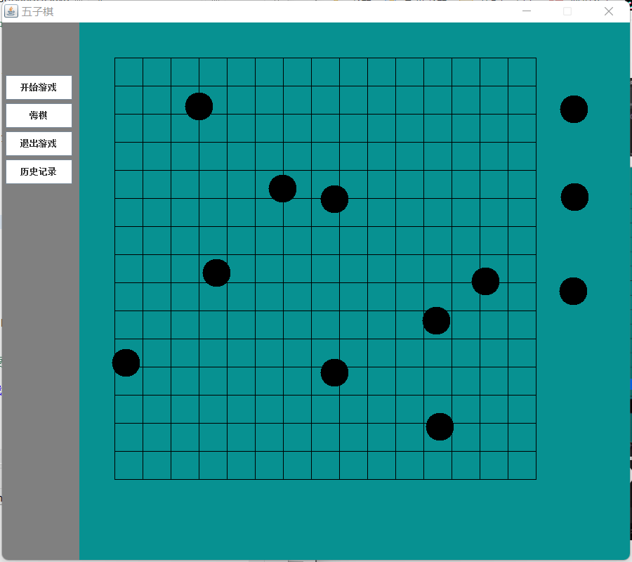 这样五子棋的基本功能就实现啦,但是还是存在许多的问题:可以重复落子,窗体最小化之后再打开棋子都消失了,按钮没有设置功能……