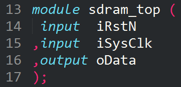 3、模块内部,除了第一行,其它行都以逗号开头并对齐端口名,调试时可以避免注释某端口时带来不必要的麻烦。