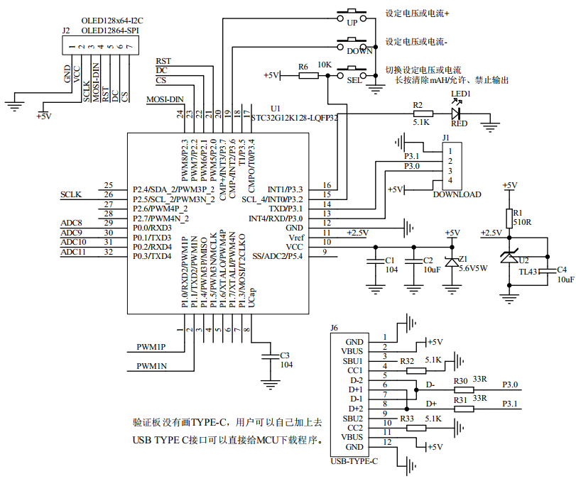 本程序使用STC32G12K128-LQFP32做的数控电源,HSPWM直接驱动MOSFET输出接功率电感和电容滤波,