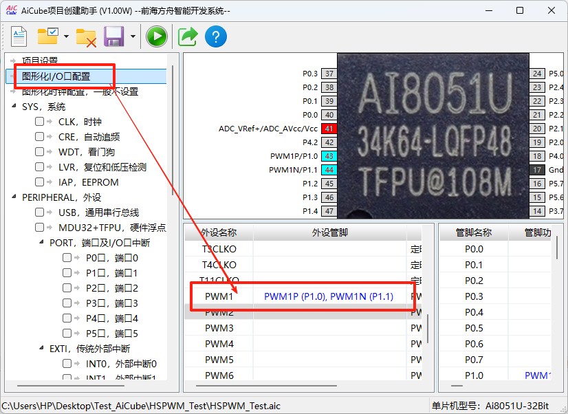 在AiCube的点击左侧的“图形化I/O口配置”,