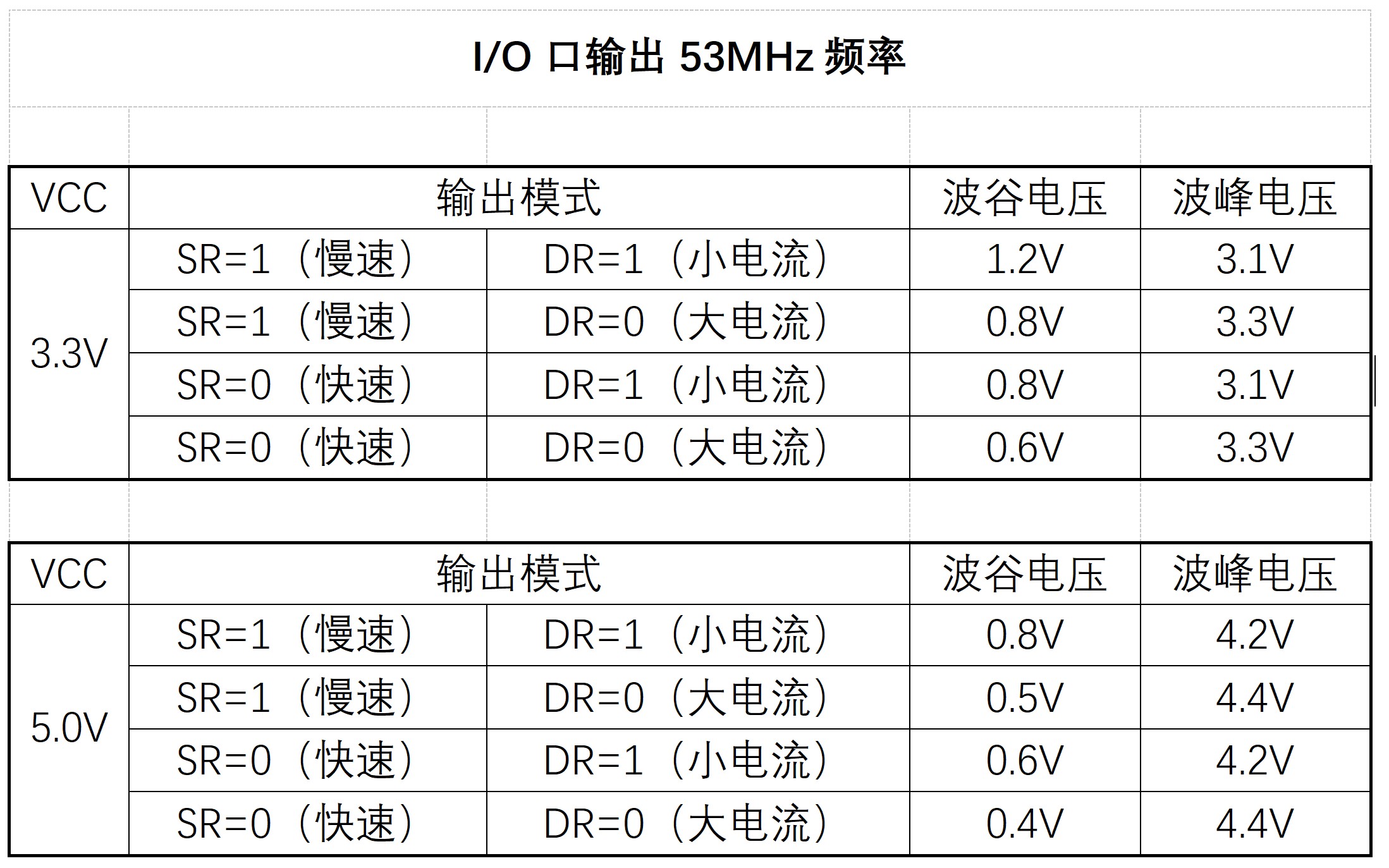 3.3V, I/O 对外输出速度,45MHz ~ 53MHz