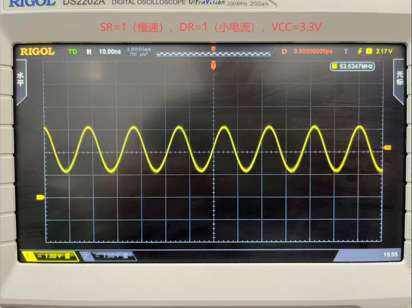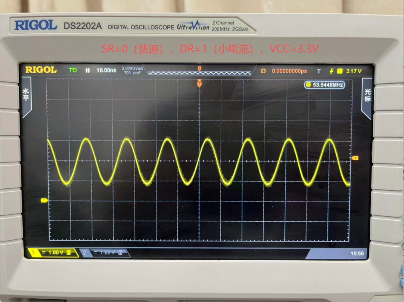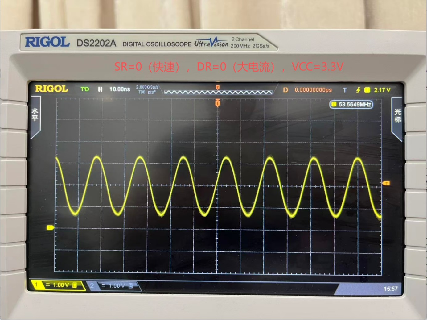 3.3V, I/O 对外输出速度的实际波形,53MHz