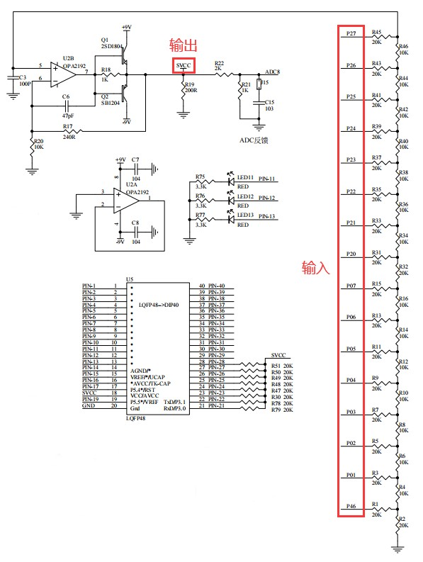 3. 使用普通I/O口和电阻分压实现高速DAC输出高速正弦波: