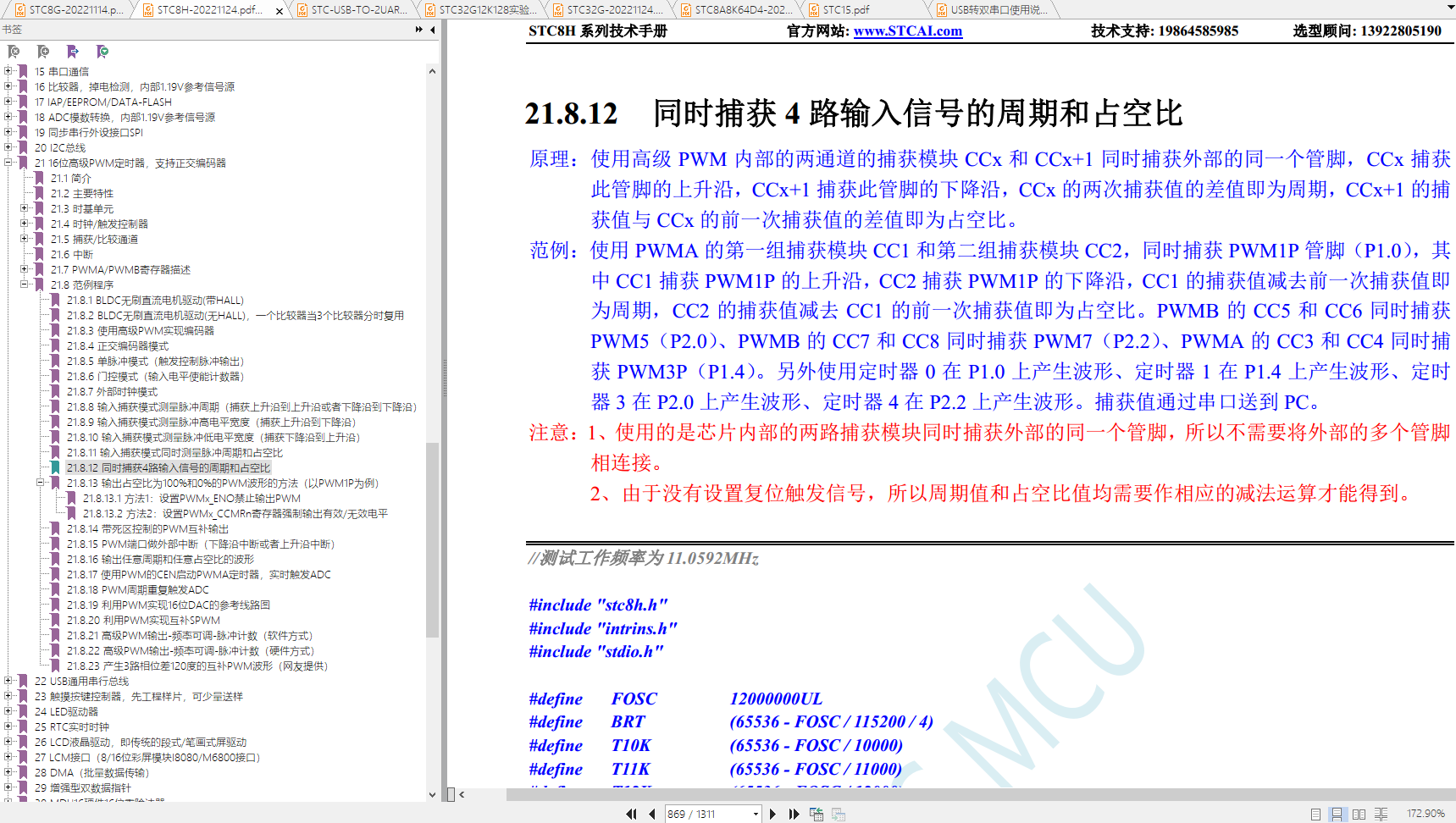 STC8H 同时捕获 4 路 输入信号的周期和占空比,有视频讲解