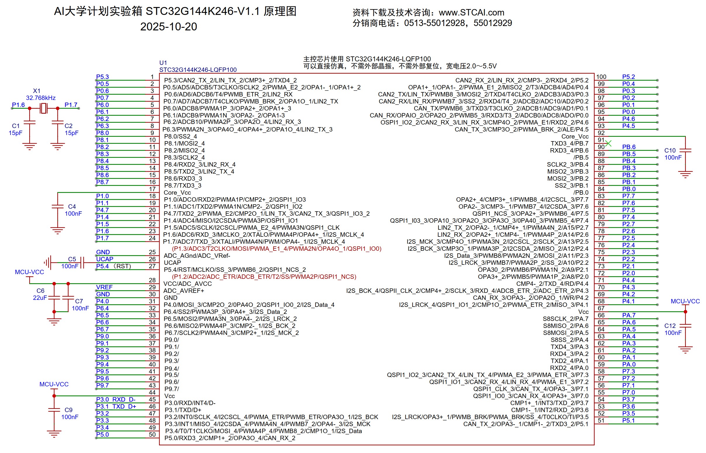 STC32G144K246-LQFP100实验箱20251020版本开源图纸,