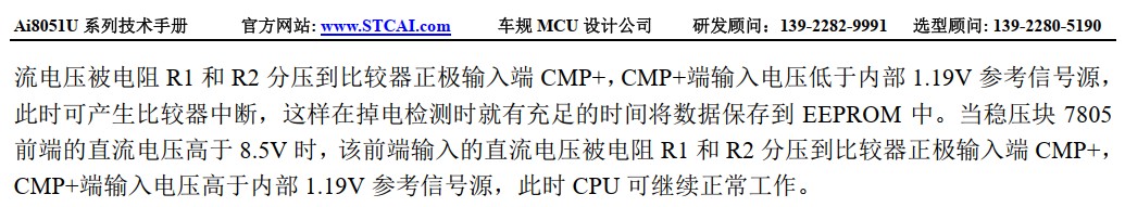 EEPROM的使用 请 配合比较器做掉电检测 EEPROM中的本次上电后可能要改的数据,上电后读到 SRAM中, 电源正常时操作SRAM, 掉电时及时写回 EEPROM