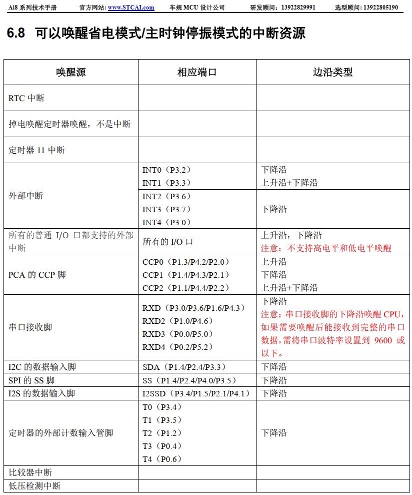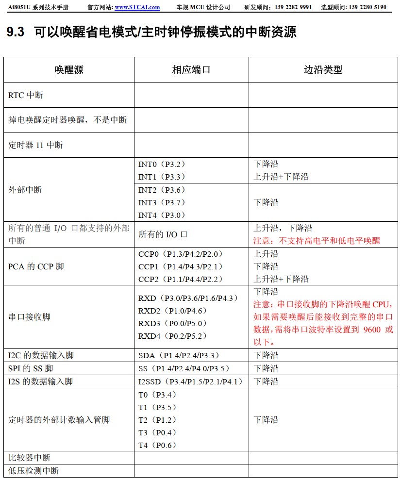 可以 唤醒 【省电模式 / 主时钟停振模式】的 中断资源