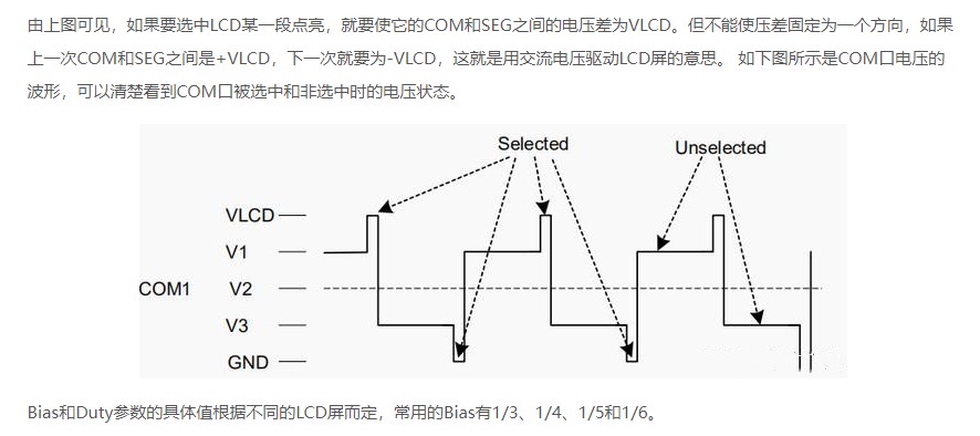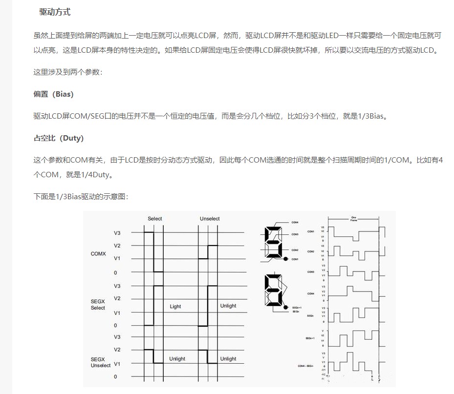 当然上述的这些不需要完全掌握,只需要知道他的意思就是说虽然同是com和seg,但是我们不能像数码管那样直接高低电平去点(虽然能点亮,但是很容易坏),当然,由于单片机内部有LCD的驱动器,我们也不需要自己搭电路去控制了,能省下不少的成本