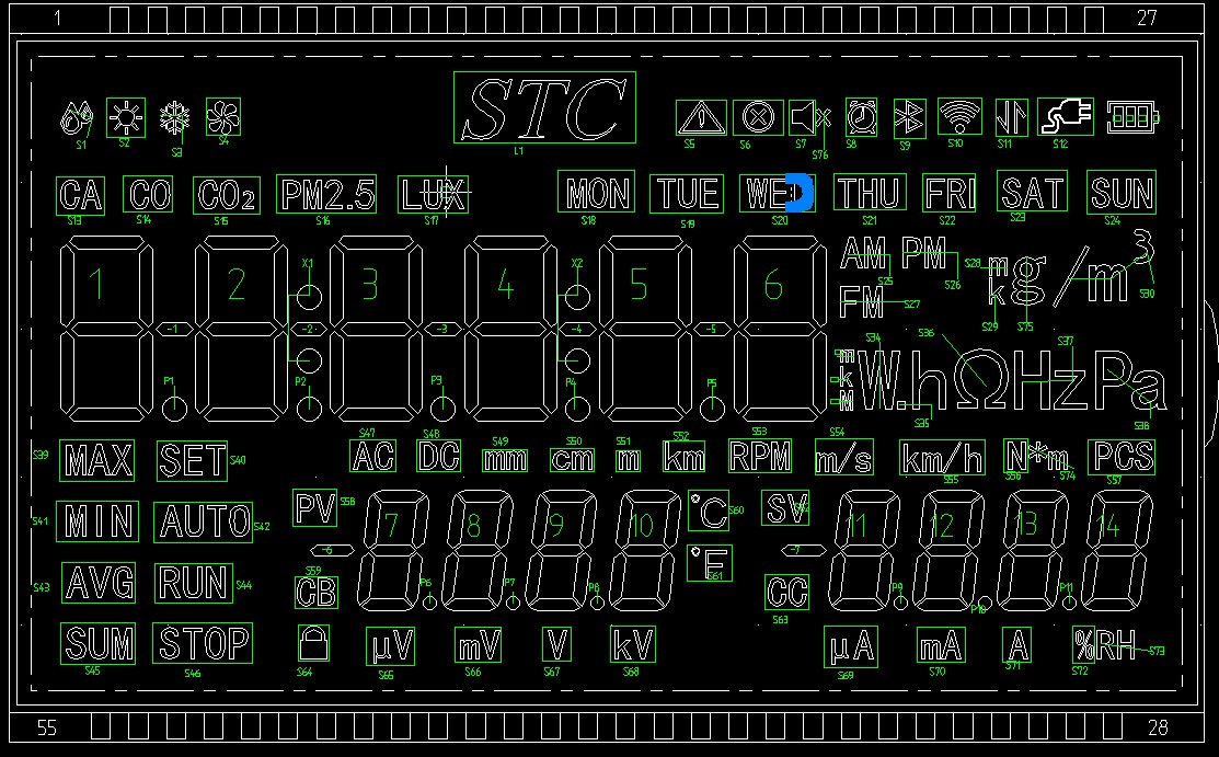 一、原理分析 首先对于一个程序员来说,拿到一个段码屏要先看他的段码表和点亮效果图(每一个图标里的序号和第二个段码表里的序号对应)