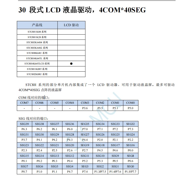 1.从首页的介绍可以知道,目前stc能带段码屏的只有这个型号,其次他最大驱动4*40的段码屏,基本上绝大多数场合是完全够用了的。