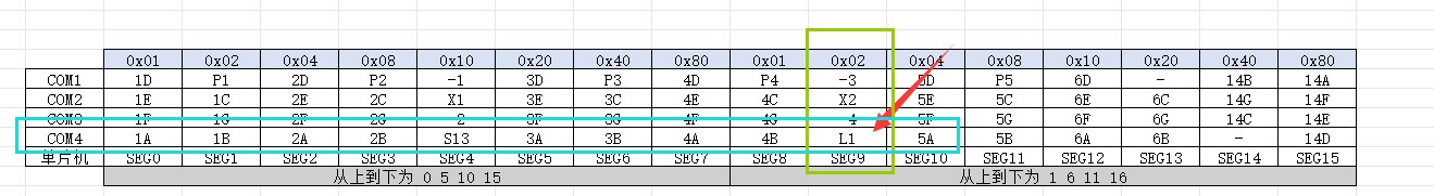 例3:要想点亮“L1”所在的图标就是LCD_buff[16] |= 0x02;