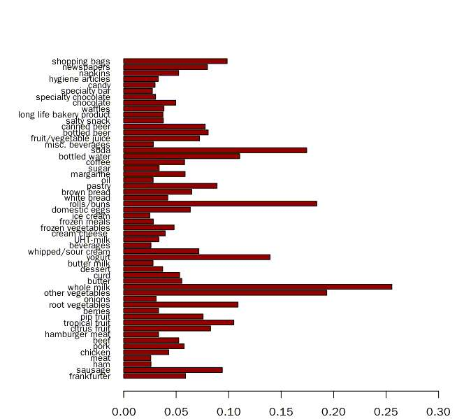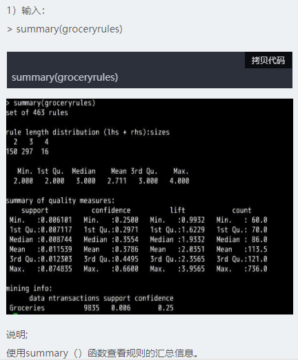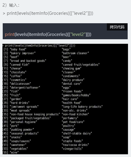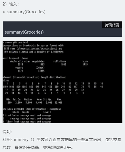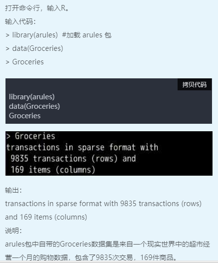 2、利用超市购物篮Groceries数据进行关联规则分析。