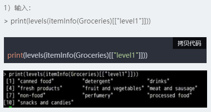 说明:使用itemInfo()进行查看summary()函数结果中level1和level2字段的详细信息。