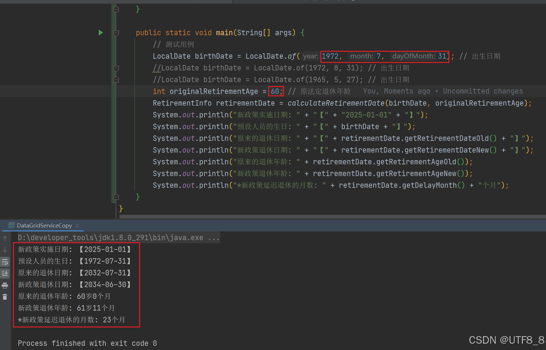 System.out.println("新政策退休年龄: " + retirementDate.getRetirementAgeNew());