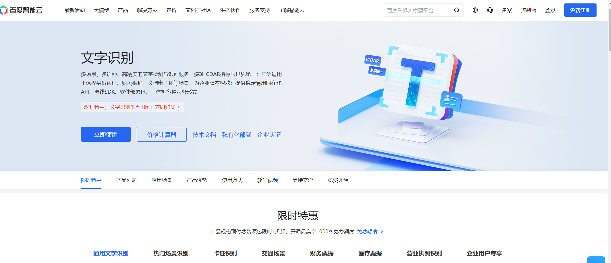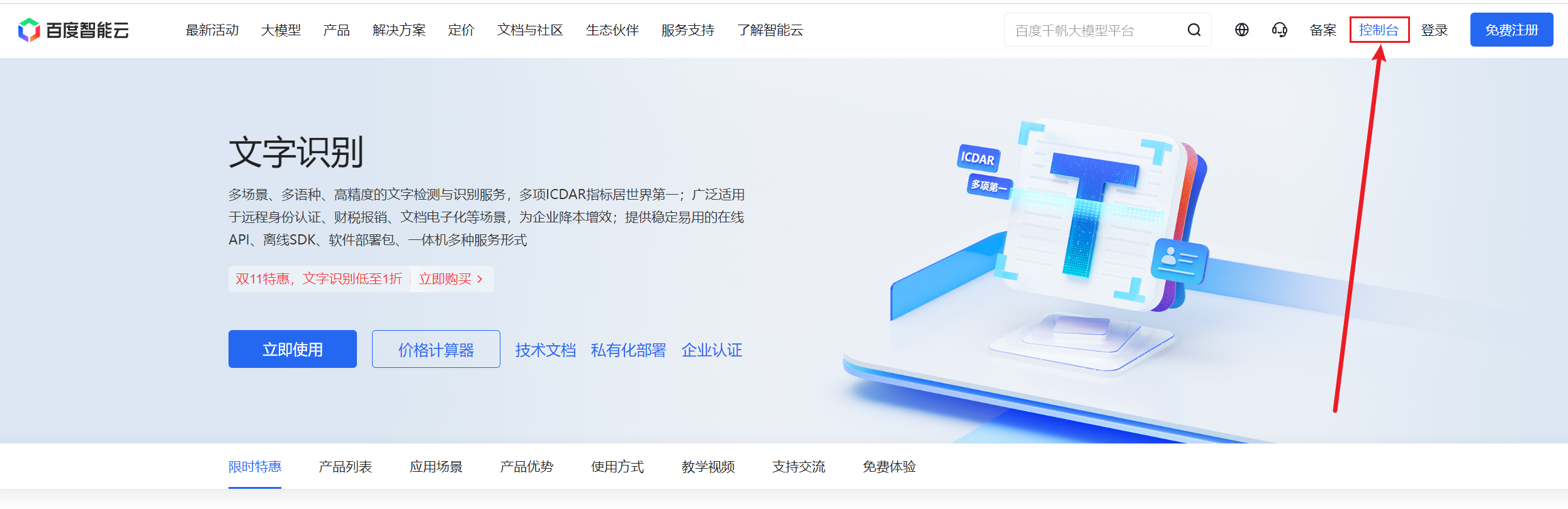 获取官方接口文档:文字识别OCR