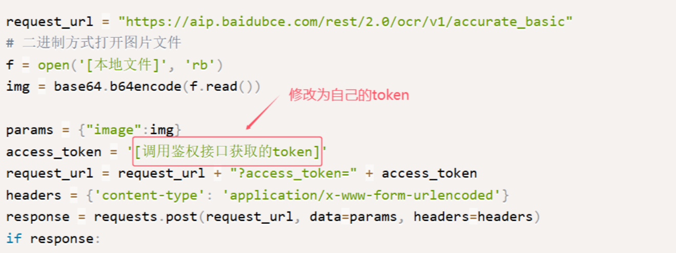 access_token = "百度ocr识别鉴权token"