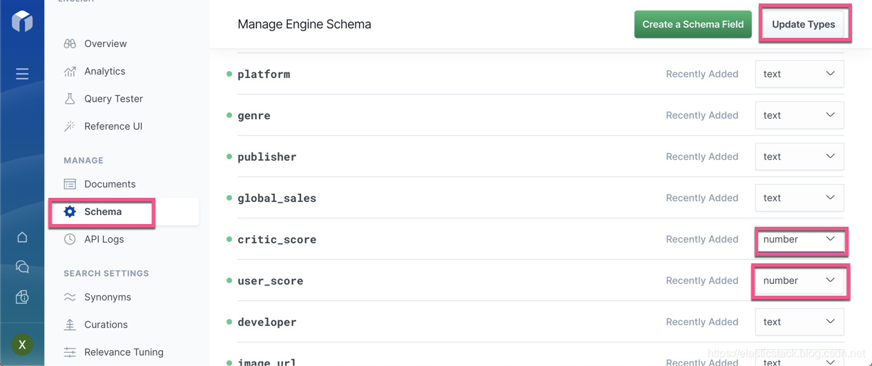 - 调整 schema,并将 user_score 和 critic_score 更改为数字字段。