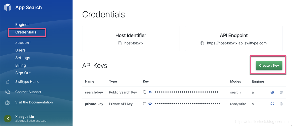 我们有来自 App Search 的 Public Search Key 和 Host Identifier。