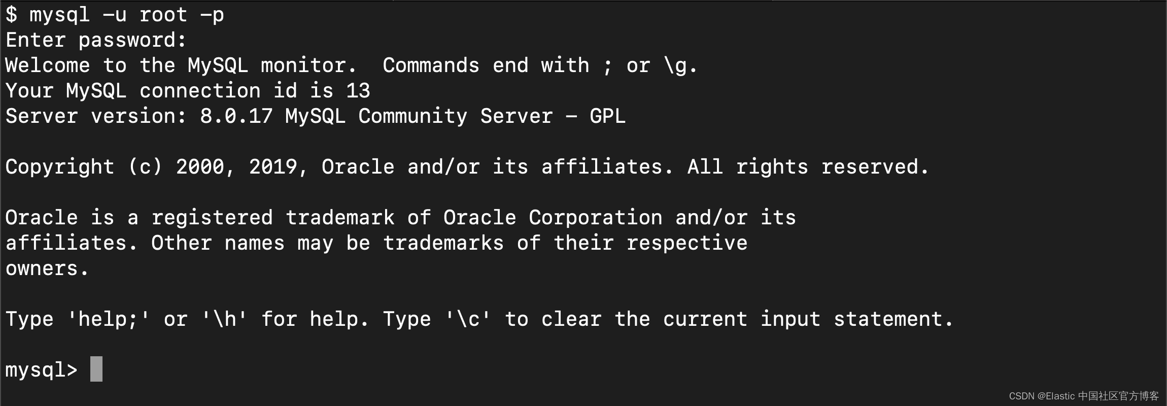 在安装完 MySQL 后,我们可以使用如下的命令来登录 MySQL: