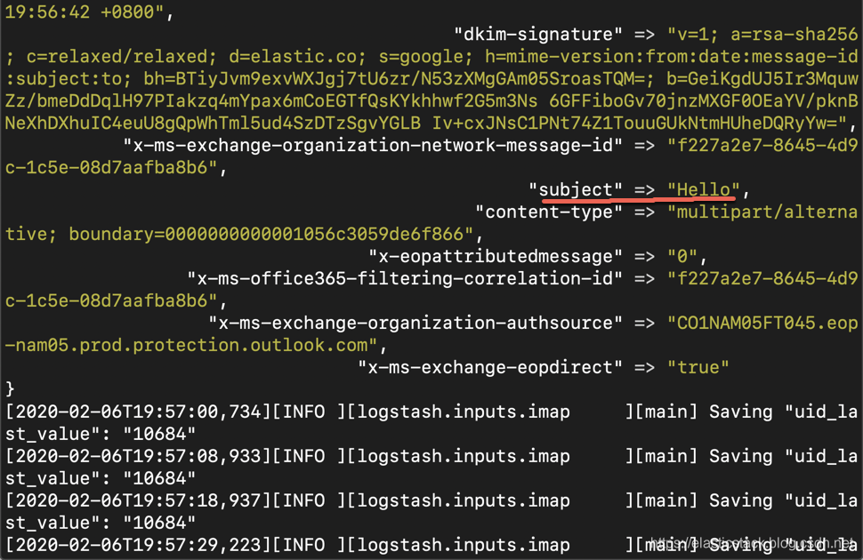 接下来,我们需要使用 “logstash-input-imap” 作为输入来配置 Logstash 管道。 此插件所需的唯一配置是 “host”,“password” 和 “user”。