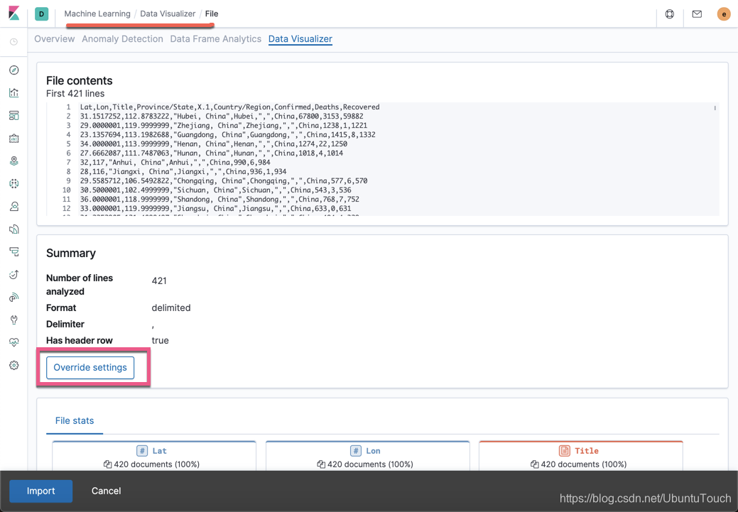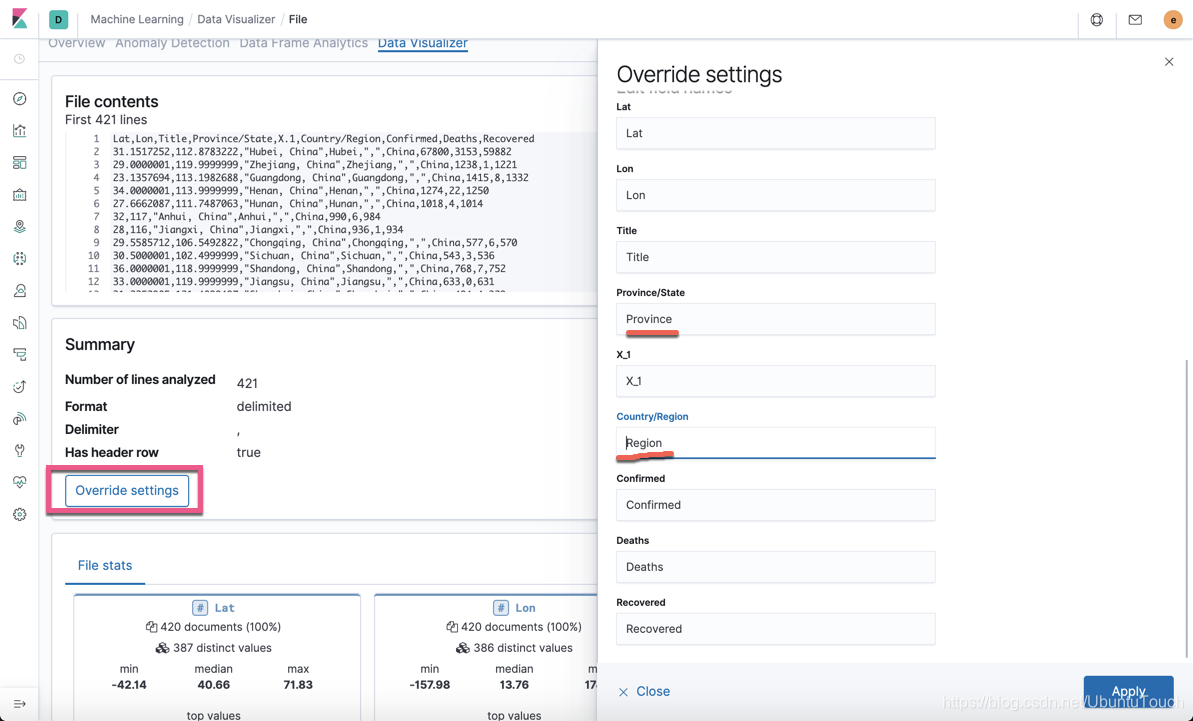 在我之前的文章 “运用Elastic Stack分析COVID-19数据并进行可视化分析”,我使用了 Beats 来导入 COVID-19 数据到 Elasticsearch。在那篇文章中,我们使用了pipeline 的processors 来分析数据。在那篇文章中,我们也同时指出了我们可以使用 Kibana 所提供的 Data Visualizer 来分析我们的数据。在今天的教程中,我们来展示如何使用。