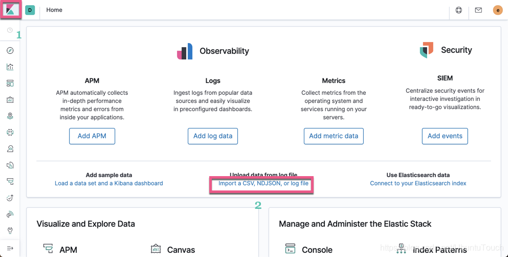 我们点击上面的 Import a CSV, NDJSON, or log file: