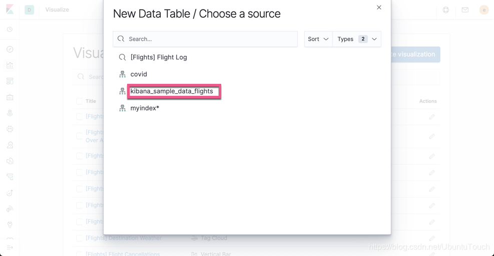 选择我们刚刚导入的 kibana_sample_data_flights 索引:
