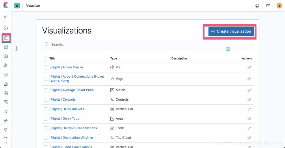 然后我们切换到 Visualize 的页面,我们重新看一下我们的之前保存的 Visualize: