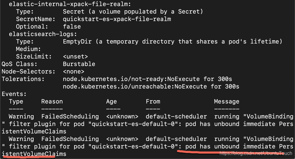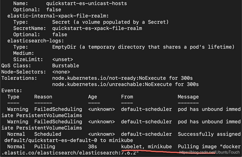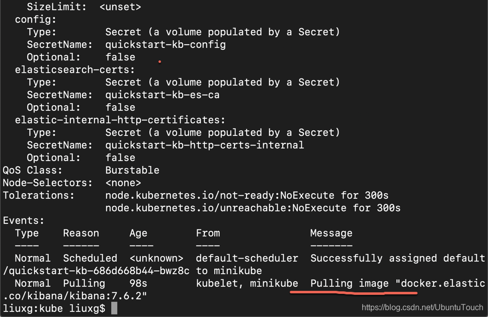 kubectl describe pod quickstart-kb-686d668b44-bwz8c