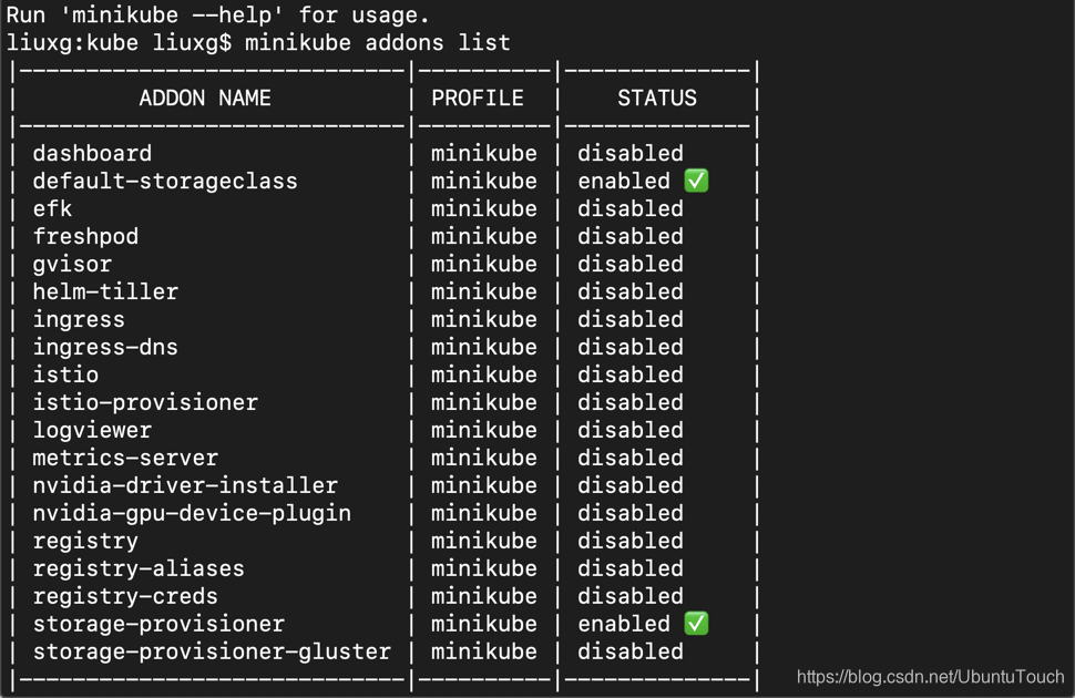 一旦 minikube 安装好后,我可以通过如下的命令来检查哪些 plugin 已经被加载: