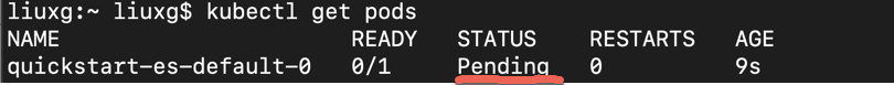 $ kubectl get pods --selector='elasticsearch.k8s.elastic.co/cluster-name=quickstart'