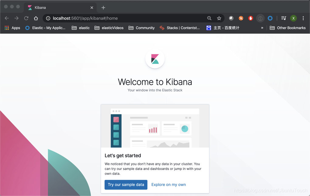 这样我们的 Elasticsearch 已经被成功部署了。我们启动浏览器,并输入地址 localhost:5601