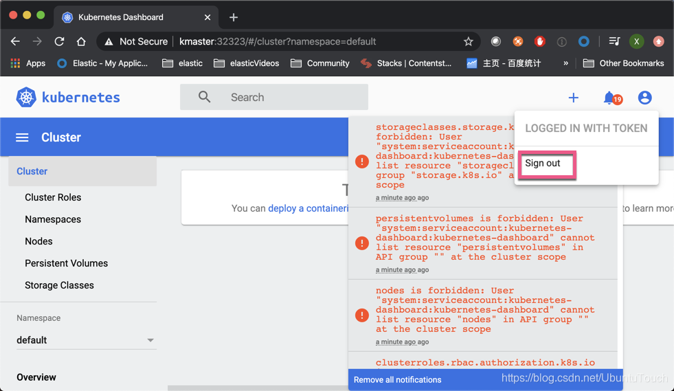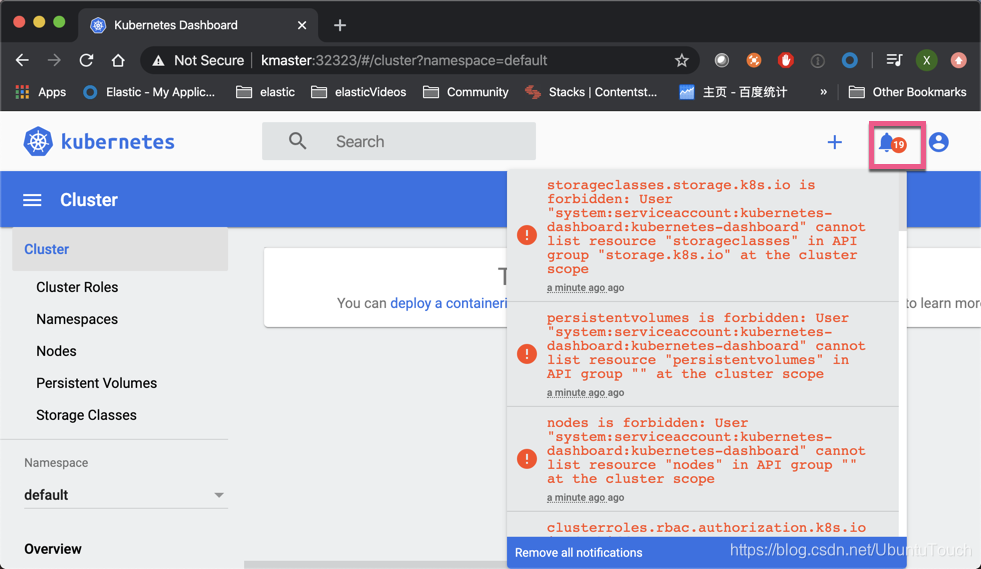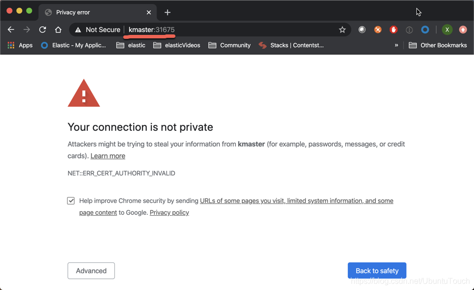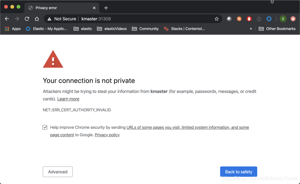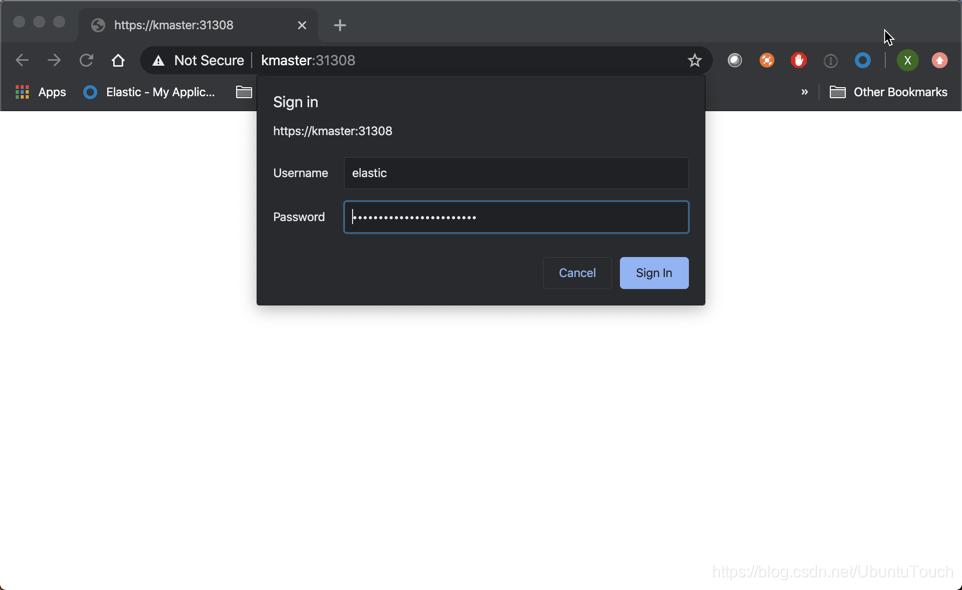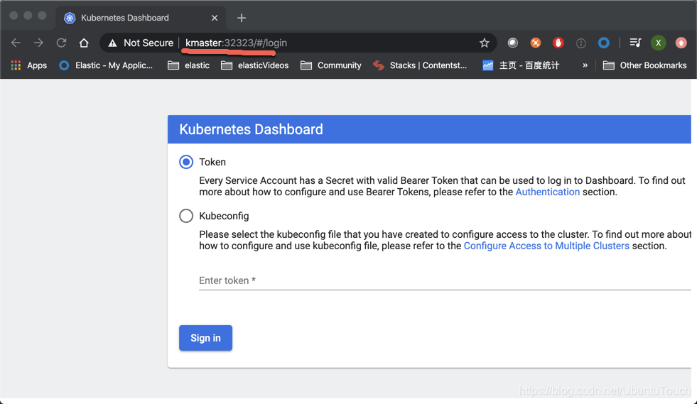 打开主机上的浏览器,我们输入地址https://kmaster:31308:
