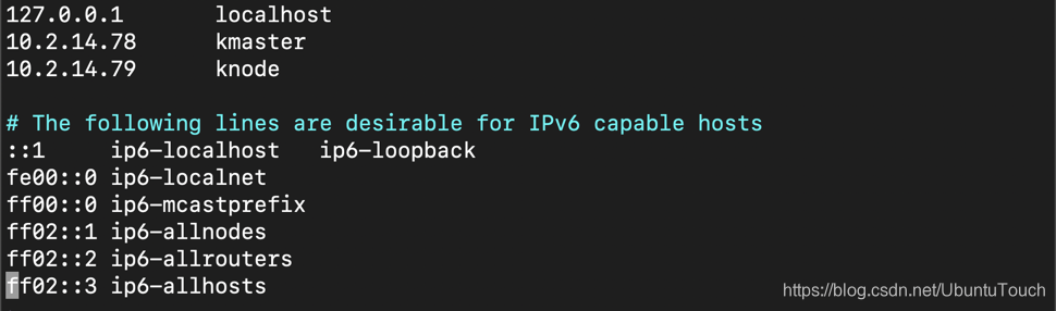 我们需要分别对 kmaster 及 knode 的 /etc/hosts 文件进行修改。添加如下的两行: