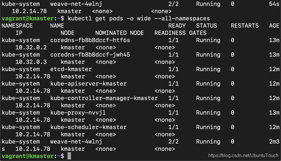我们分别在 kmaster 及 knode 目录下打入如下的命令:
