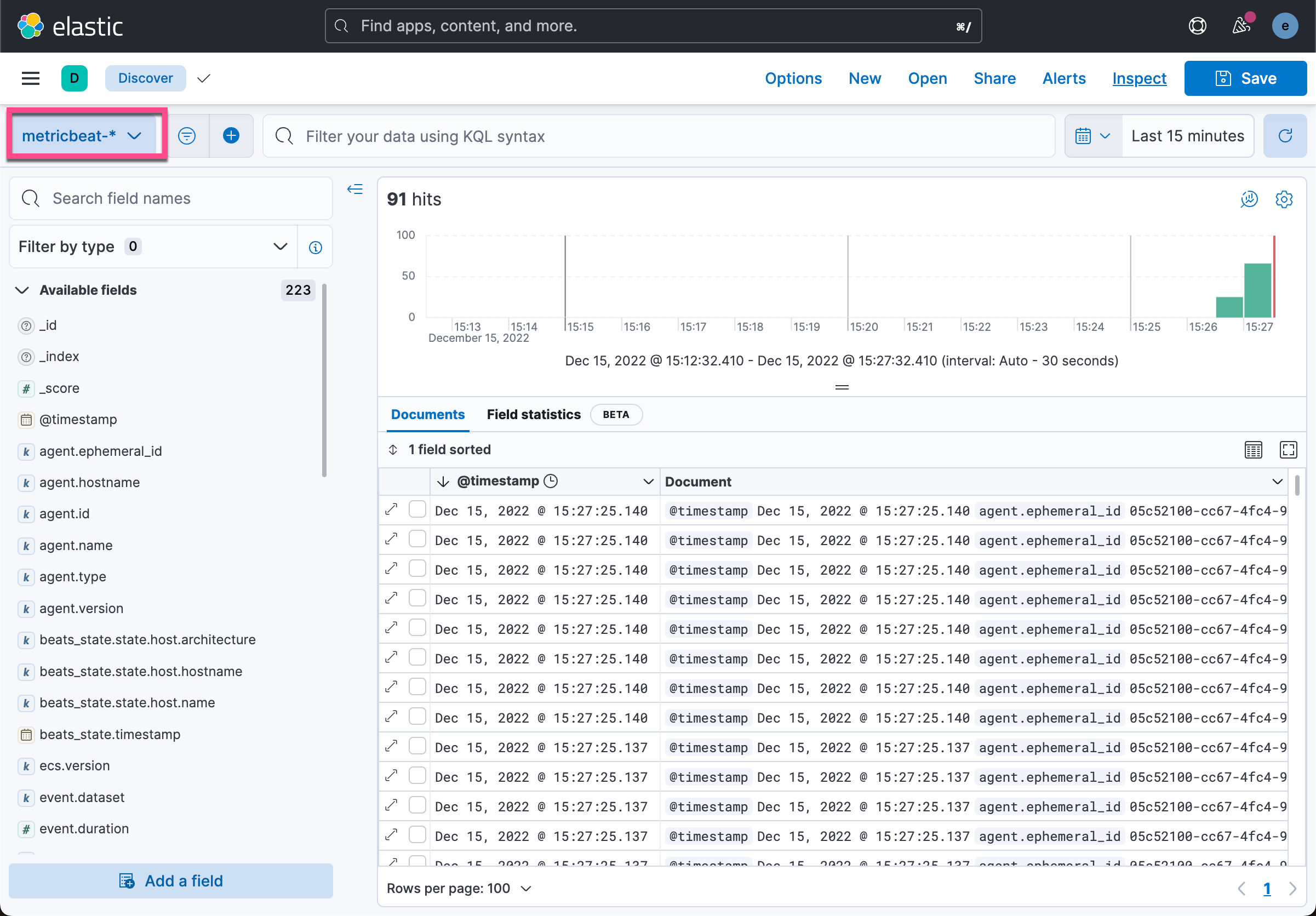 cd647e9d29e2 docker.elastic.co/kibana/kibana:8.5.3 "/bin/tini -- /usr/l…" 14 minutes ago Up 13 minutes (healthy) 0.0.0.0:5601->5601/tcp elastic8-kibana-1