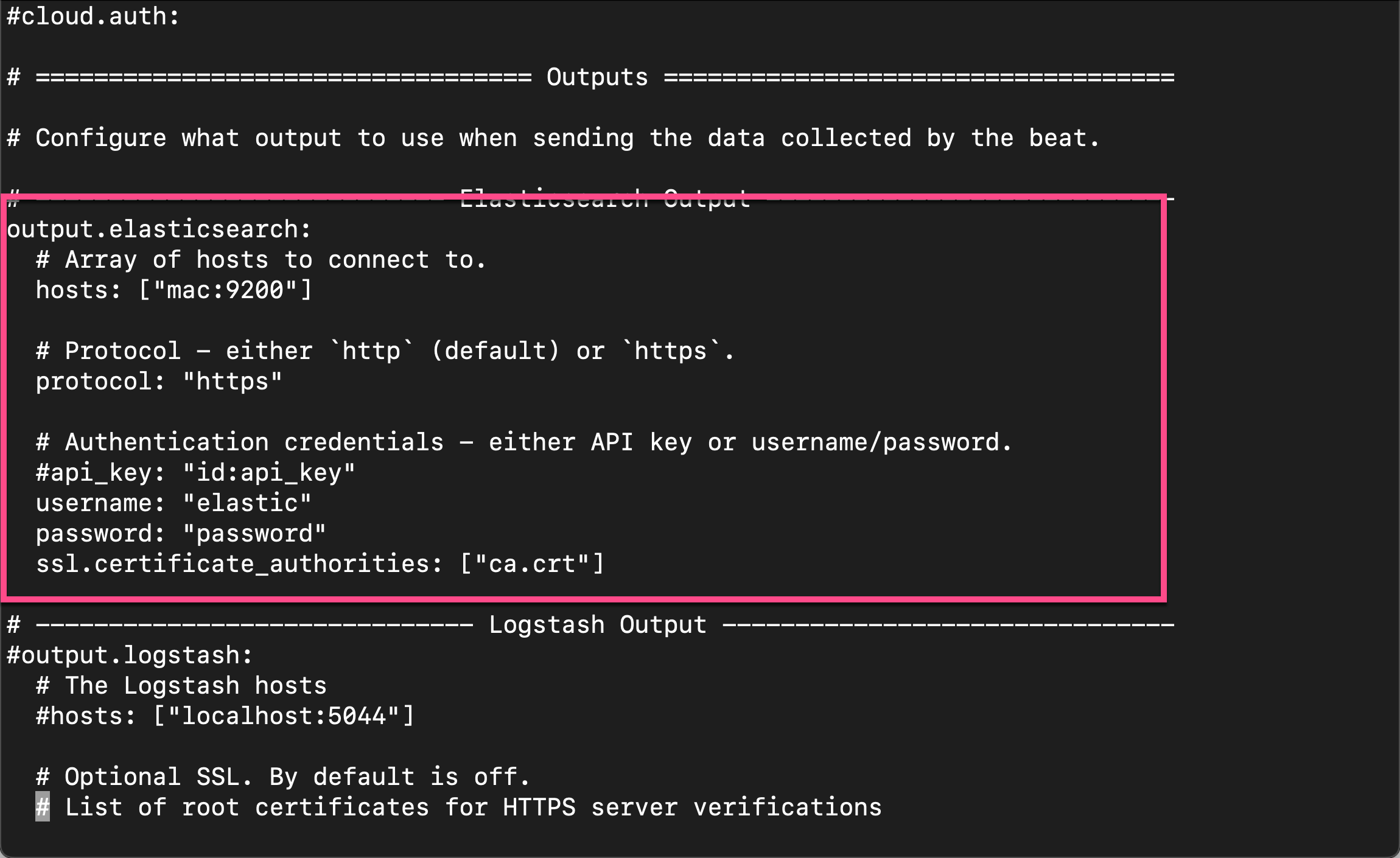 在实际的使用中,我们经常会使用 Beats 来摄入数据至 Elasticsearch 中。我们有如下的配置: