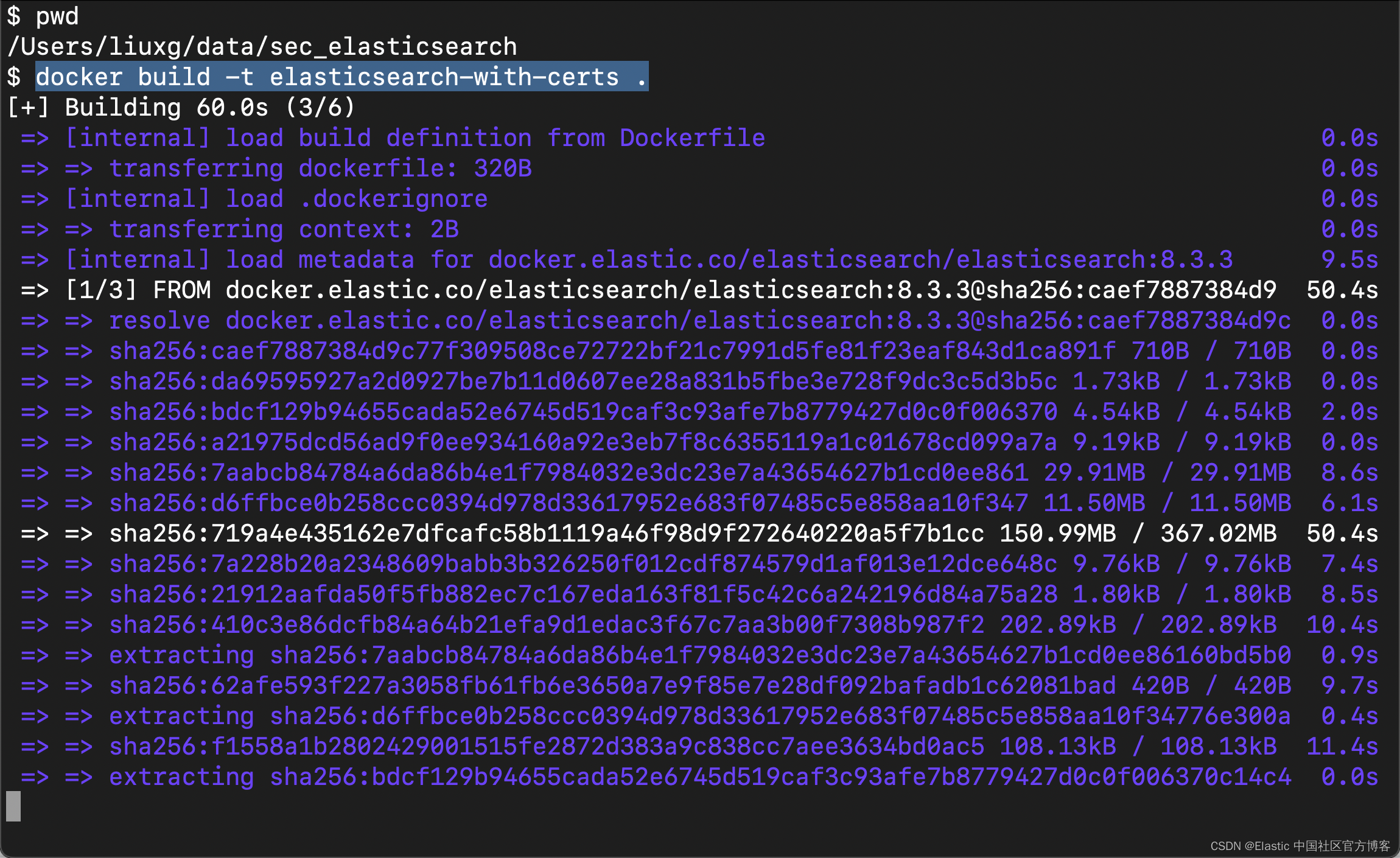 elasticsearch@2dbc39f48668:~$ pwd