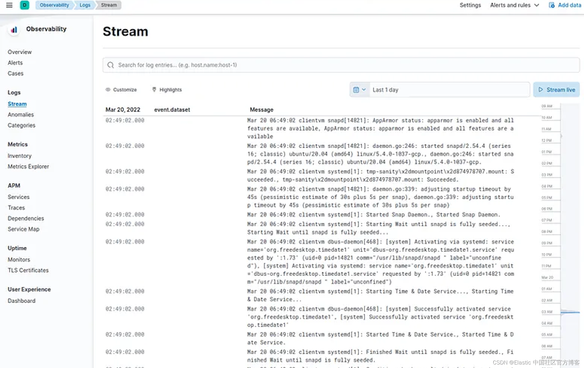 你还应该能够在 Logs > Stream UI 中看到来自客户端的一些系统日志消息:
