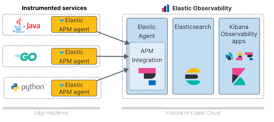 Elastic APM 依赖于 Elastic Agent 内部的 APM 集成,它将应用程序跟踪和指标数据从使用 APM 代理检测的应用程序转发到 Elastic 可观察性集群。 Elastic APM 支持多种代理风格: