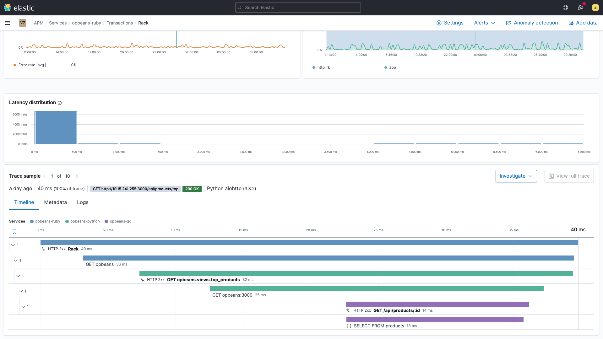 现在你已经启动并运行了 Elastic 可观察性集群并收集了开箱即用的应用程序跟踪数据,探索应用程序使用的语言的公共 API,这使你可以将 APM 数据带到下一个等级。 这些 API 允许你添加自定义元数据、定义业务 transaction、创建自定义跨度(span)等。 你可以在 APM 代理文档页面上找到各种 APM 代理(例如 Java、Ruby、Python 等)的公共 API 规范。
