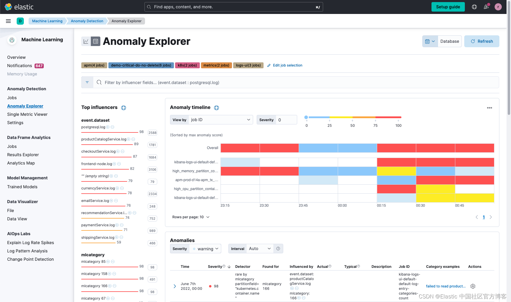 通过自动识别影响者(influencers),用户可以获得用于自动根本原因分析 (RCA) 的有价值的上下文。 日志模式分析为非结构化日志带来分类,而日志速率分析和变化点检测有助于识别日志数据峰值的根本原因。 这些方法结合起来提供了一种强大的方法来发现日志文件中隐藏的见解和问题。
