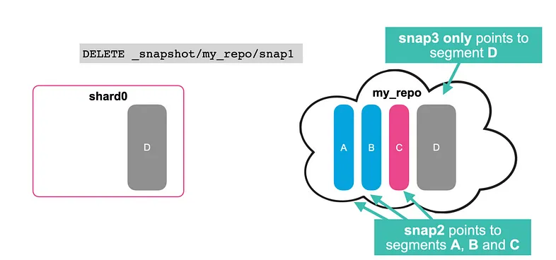 每个快照在逻辑上也是独立的。 当你删除快照时,Elasticsearch 仅删除该快照专用的段。 Elasticsearch 不会删除存储库中其他快照仍在使用的段。