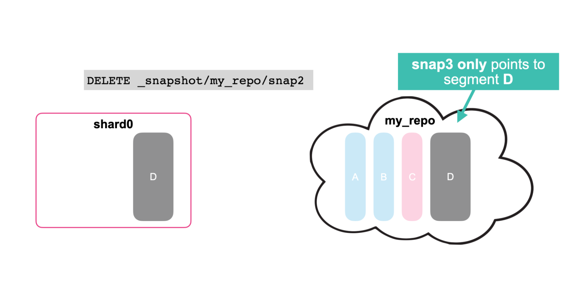 - 只有在删除 snap2 后,段 A、B 和 C 才会从存储库中删除。