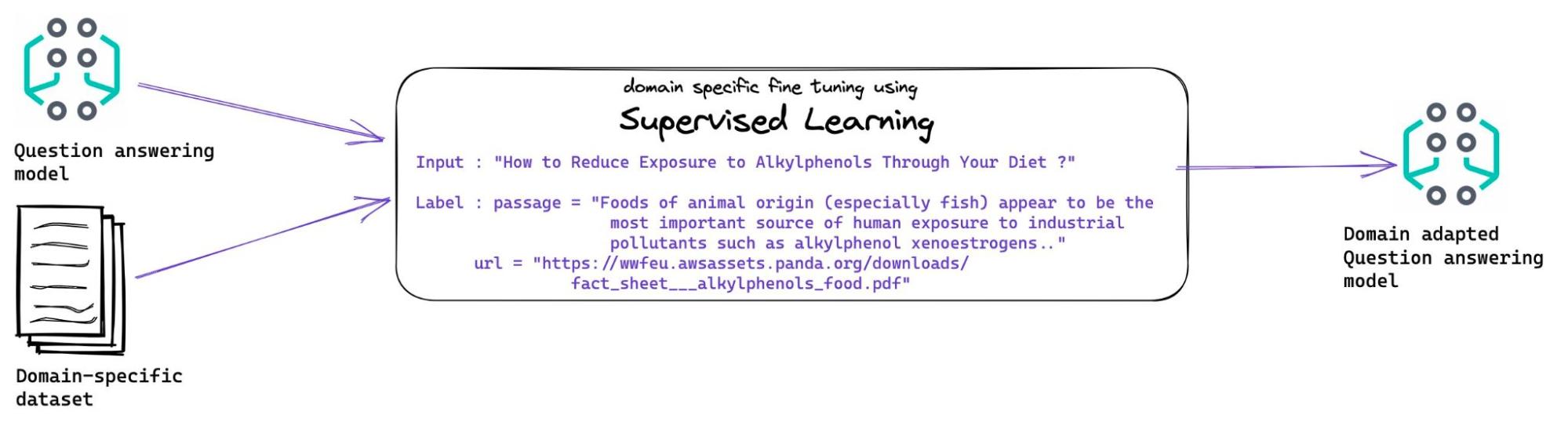 根据你的数据与用于特定于任务的训练的数据集的不同程度,你可能需要使用特定于域的标记数据集来训练你的模型。 此步骤也称为域适应微调或域适应。