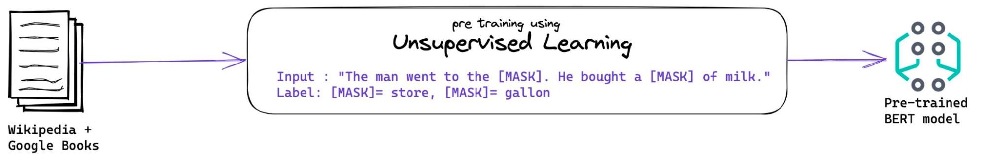 这称为预训练。 该模型学习语言标记的向量表示,可以通过更少的训练来适应其他任务。